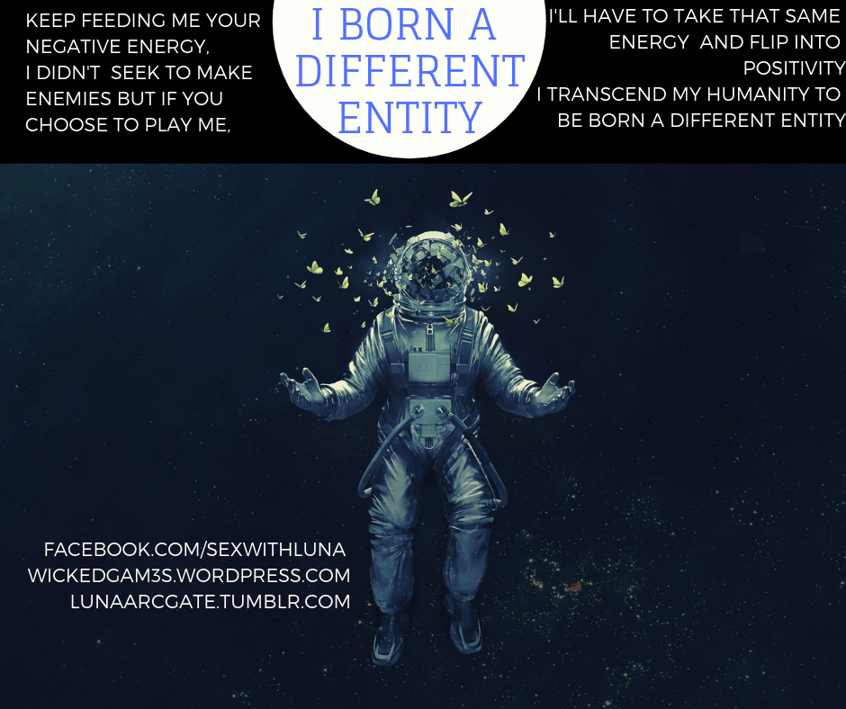 I TRANSCEND MY HUMANITY TO BE BORN A DIFFERENT ENTITY