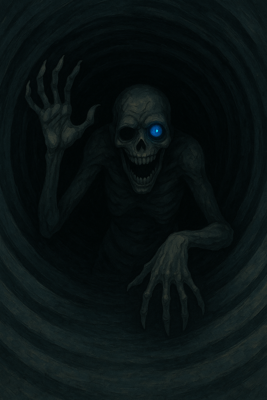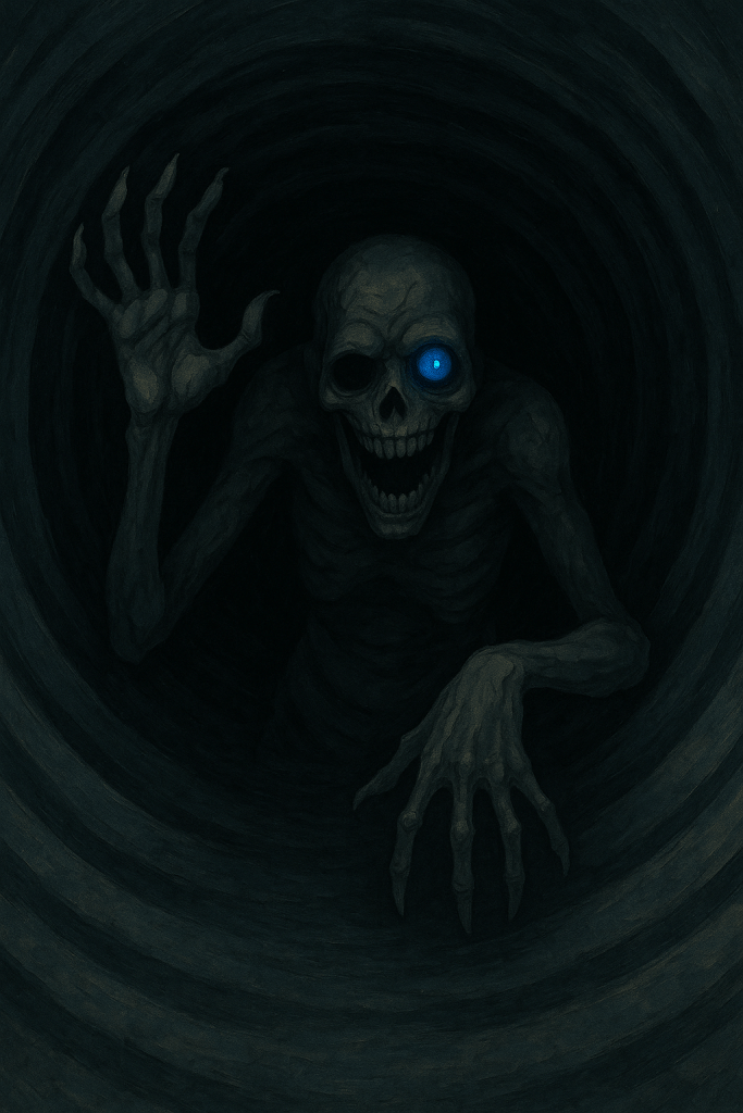 And just before the light died completely, the camera caught a blur of something stepping forward—something gaunt and ghoulish, with one glowing blue eye. The other eye was a hollow crater.